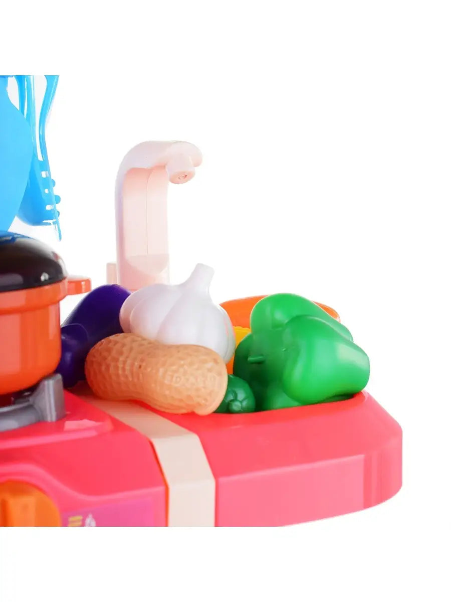 Ovaj set donosi prskalicu za vodu koja realistično imitira pranje sudova i povrća, što igru čini dinamičnom, zanimljivom i edukativnom.