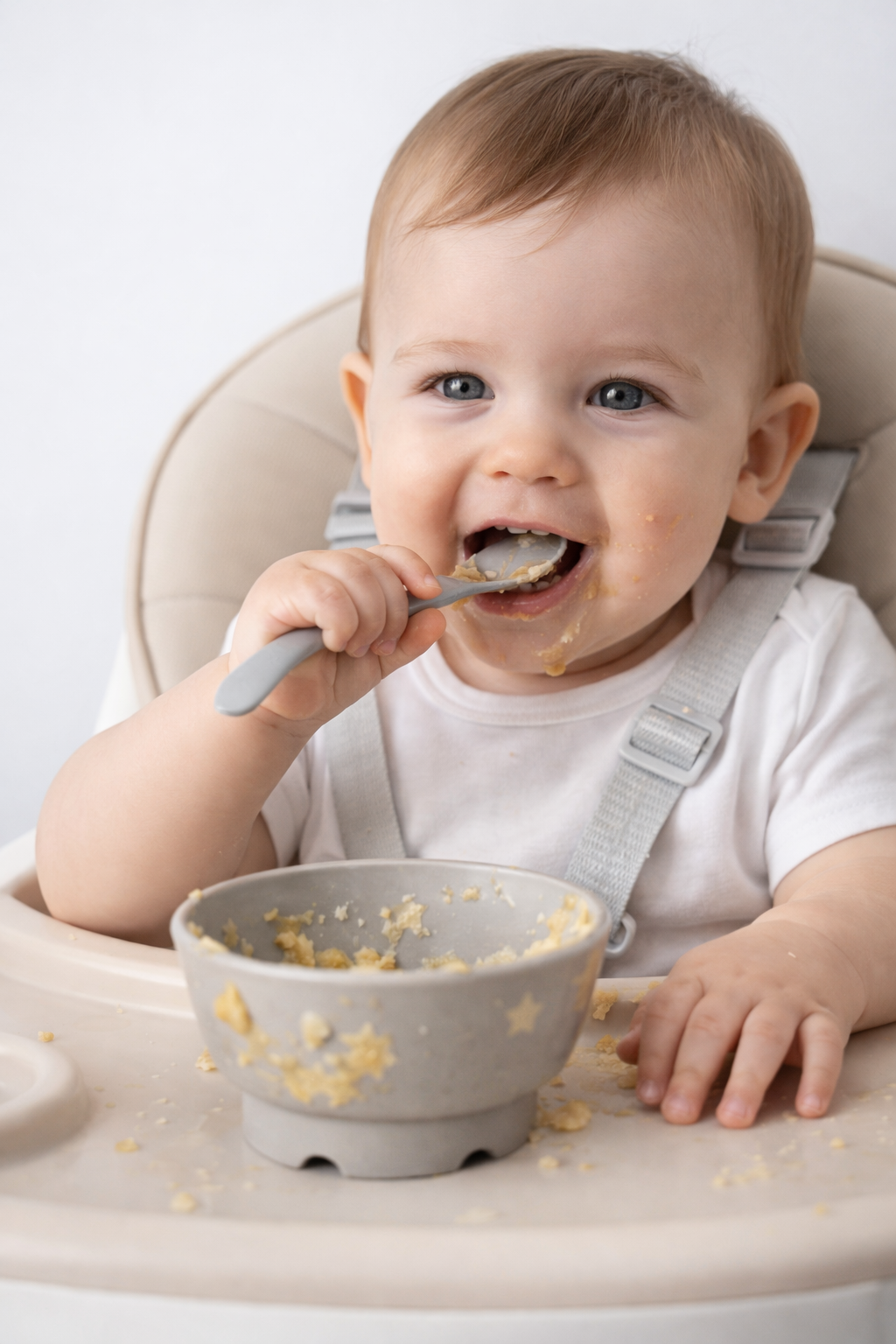 Hranilica za bebe dizajnirana je da olakša prve obroke i učini ih sigurnim, udobnim i praktičnim. Namijenjena je bebama od 6 mjeseci pa nadalje, kada počinju prvi samostalni obroci i upoznavanje sa čvrstom hranom.